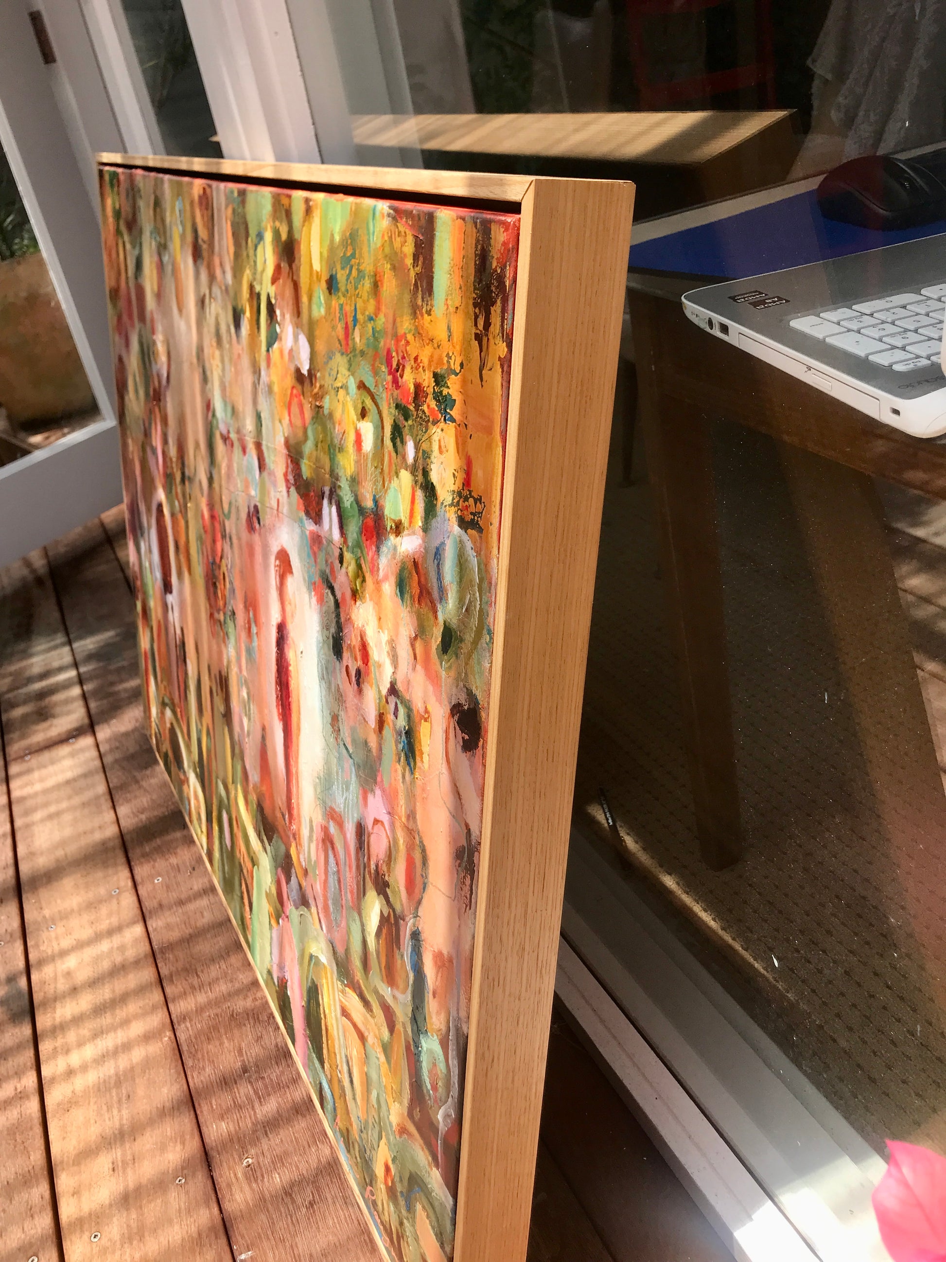Framed in a natural oak float frame